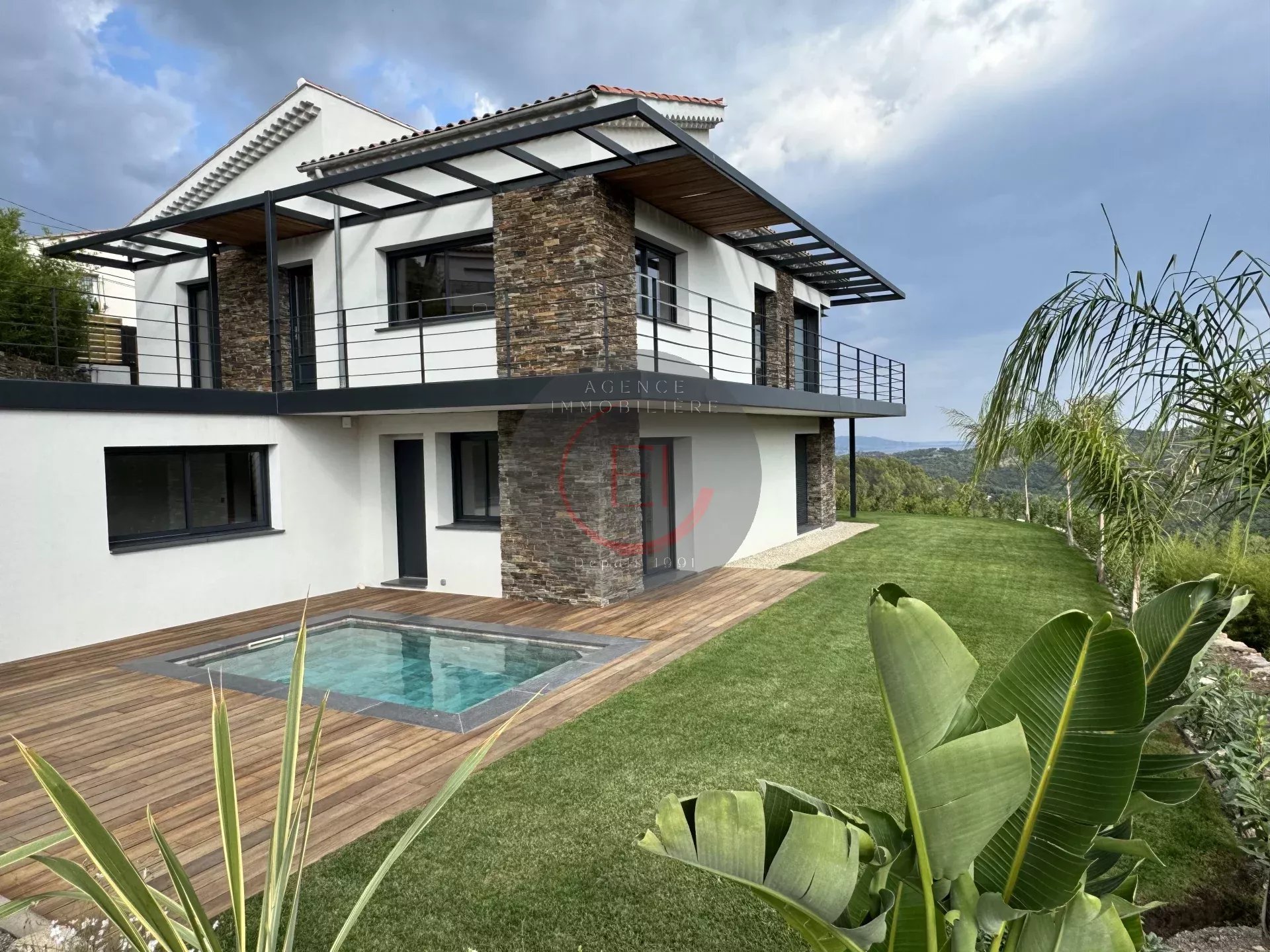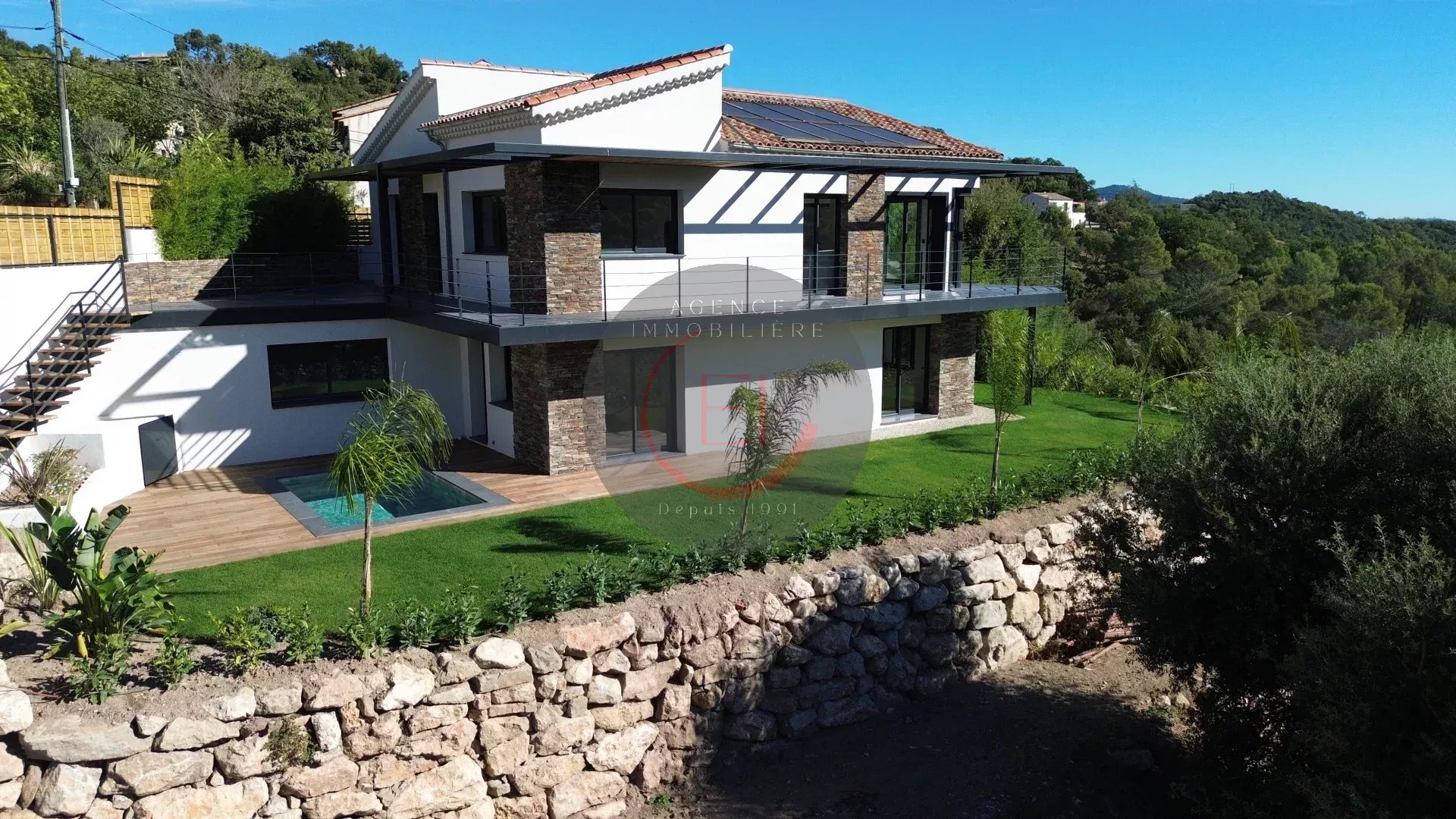 Outside, a Balinese-style pool enhances a landscaped plot of approximately 564 m², offering a privileged living environment.
