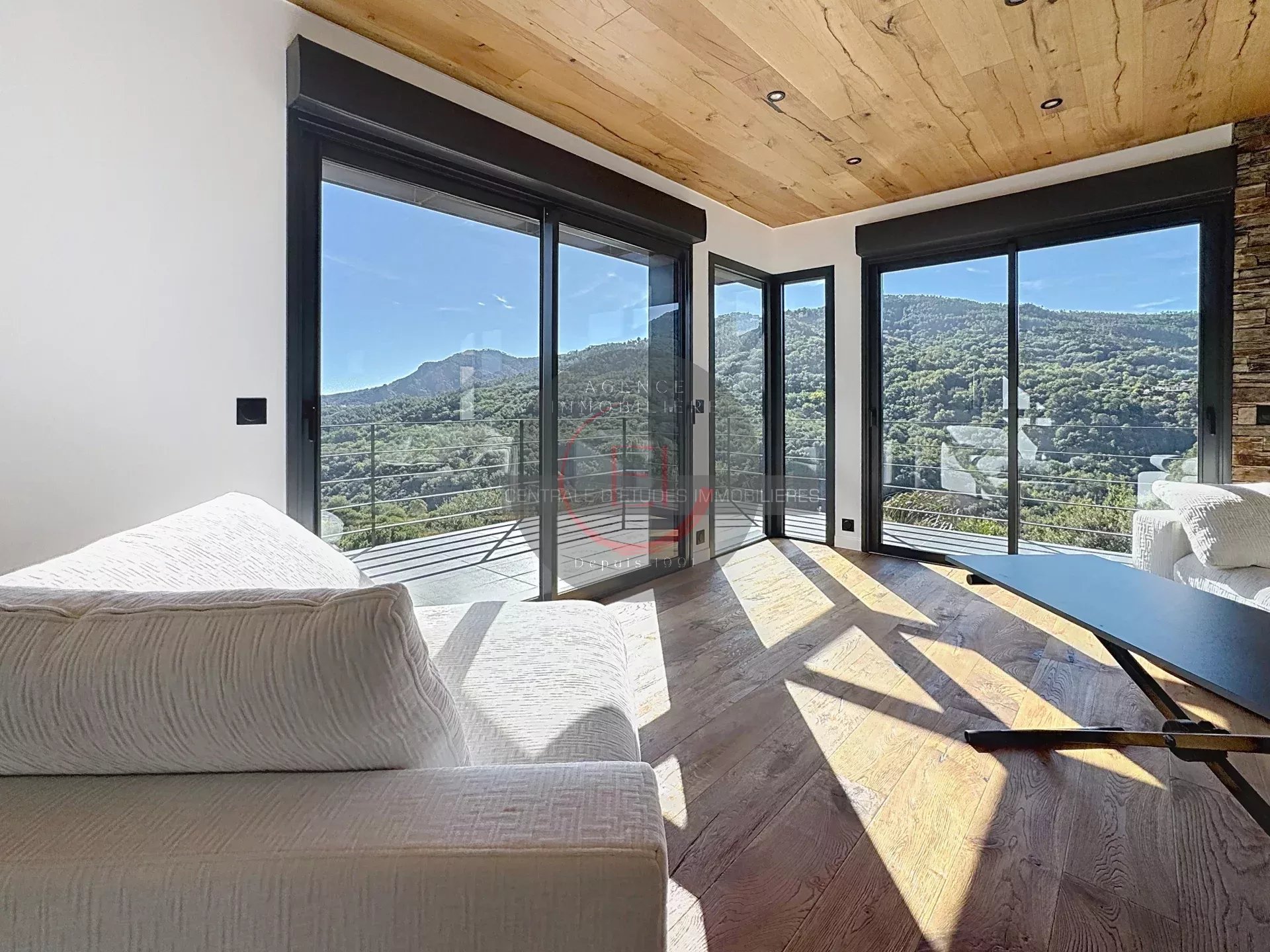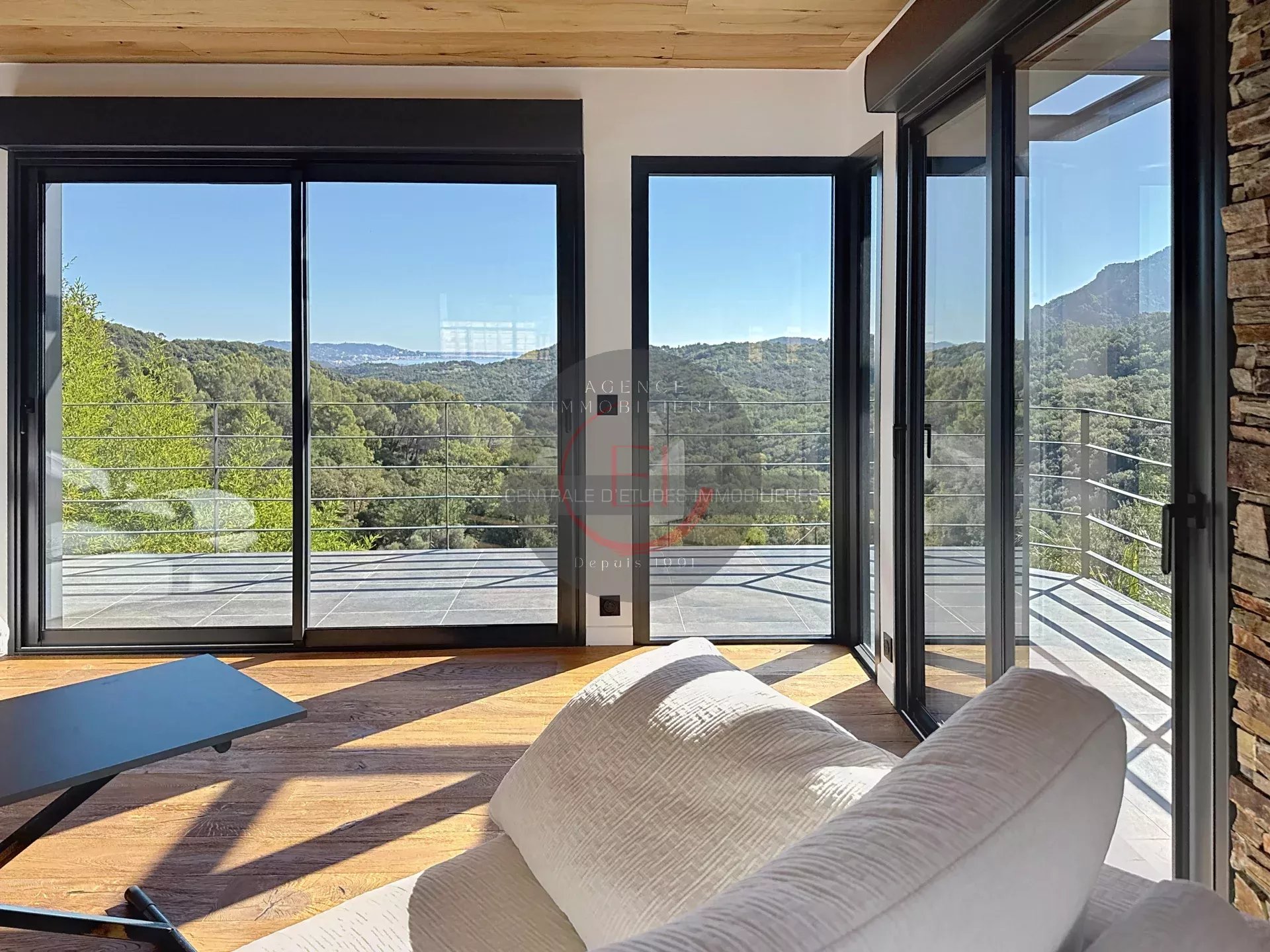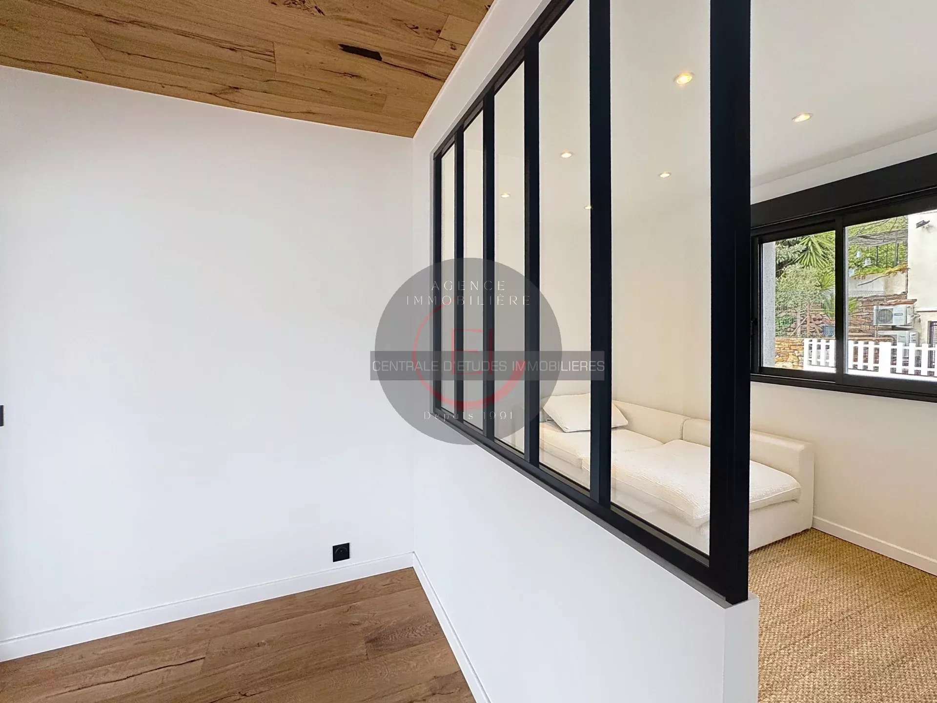 Located in a green and peaceful setting, this fully renovated villa in a contemporary style captivates with its exceptional brightness and unobstructed sea views.