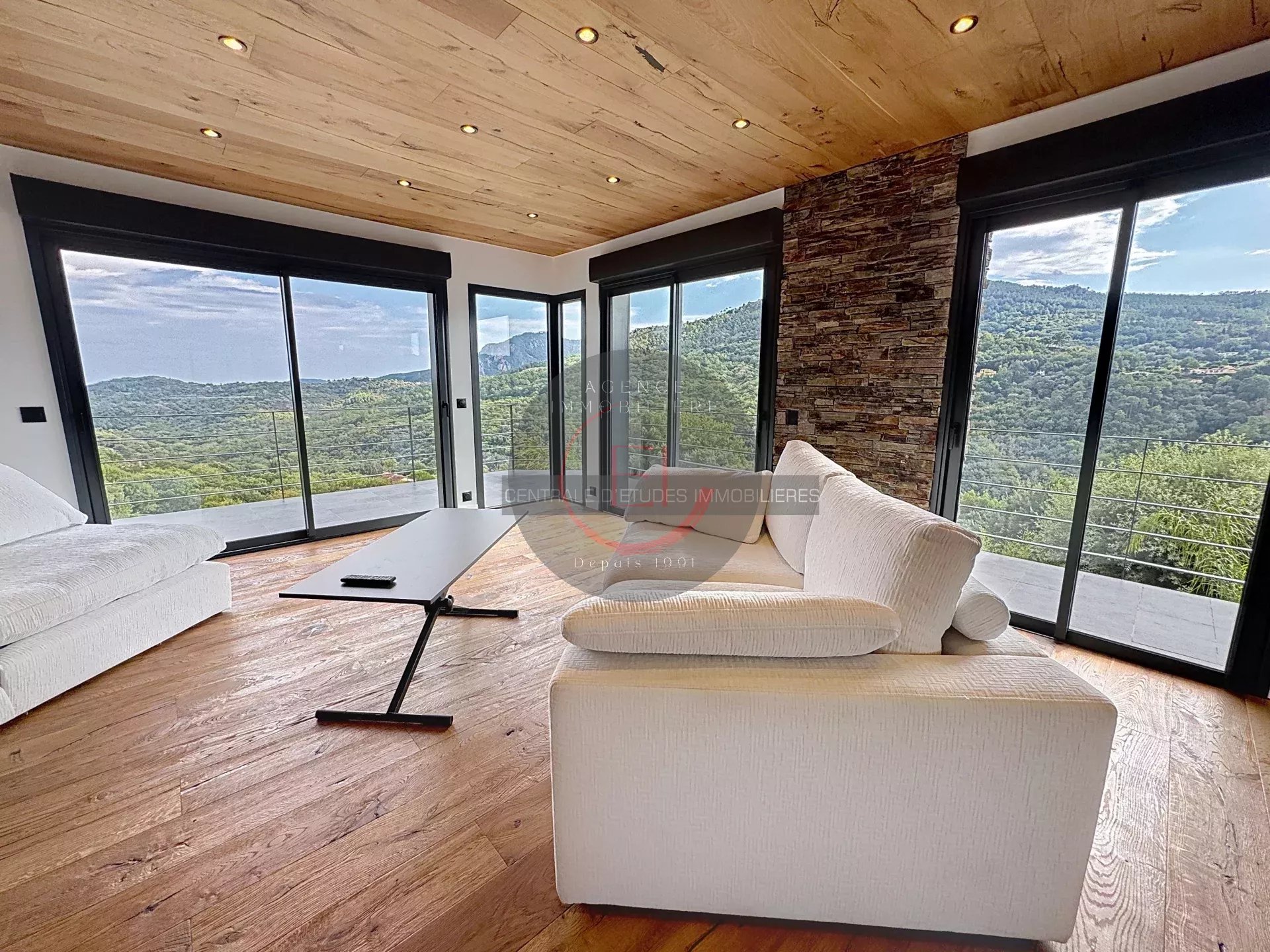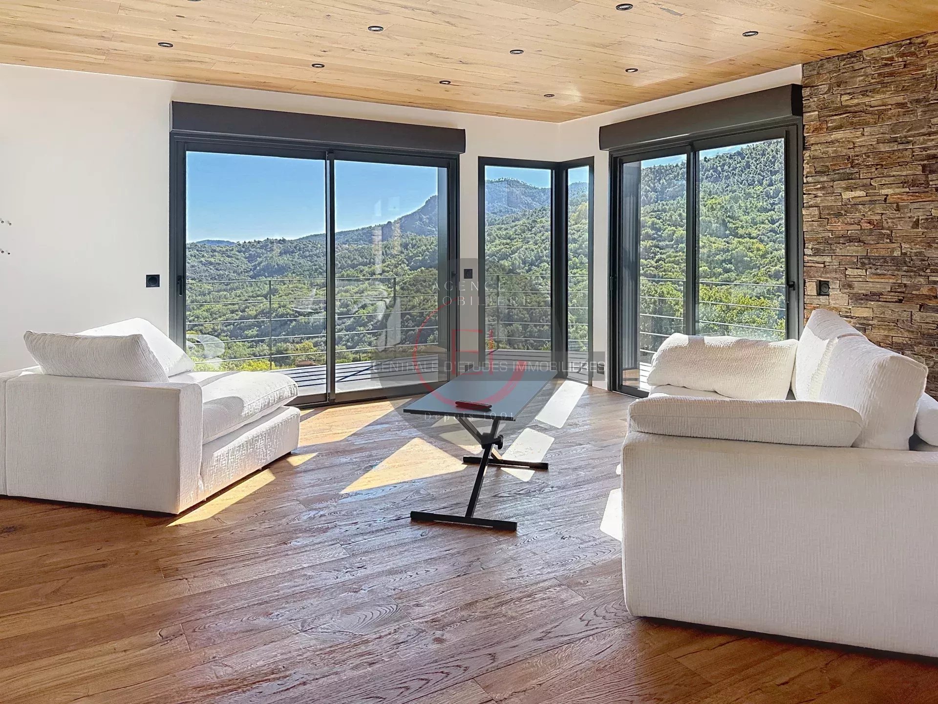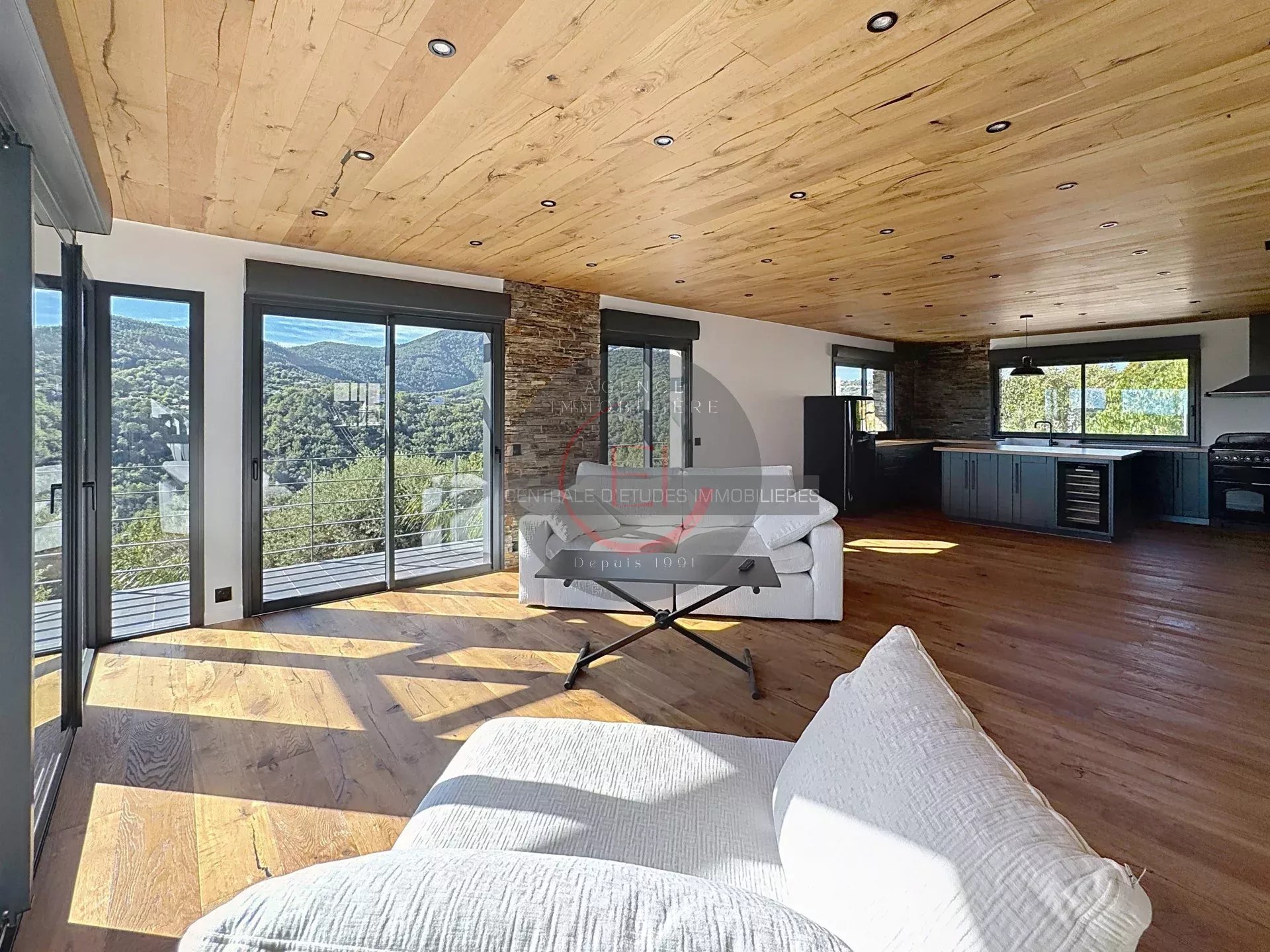 Located in a green and peaceful setting, this fully renovated villa in a contemporary style captivates with its exceptional brightness and unobstructed sea views.
