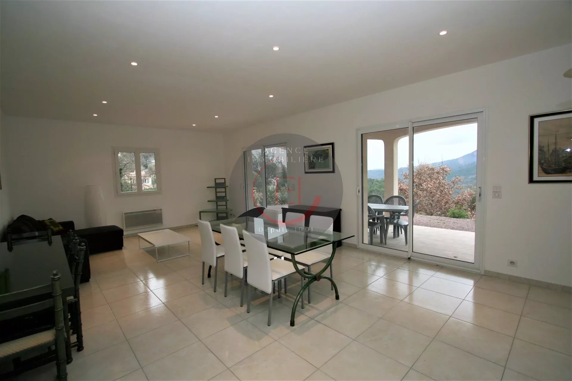 Dans un secteur très calme et verdoyant, JOLIE VILLA RECENTE très lumineuse et bien ensoleillée, disposant d'une belle vue dégagée, comprenant: beau salon-séjour avec baie vitrée ouvrant sur un terrasse couverte, cuisine US aménagée et équipée, buanderie, 3 chambres dont 1 de plain-pied, bureau, 2 salles d'eau, 2 WC, terrasse sur un terrain clos.