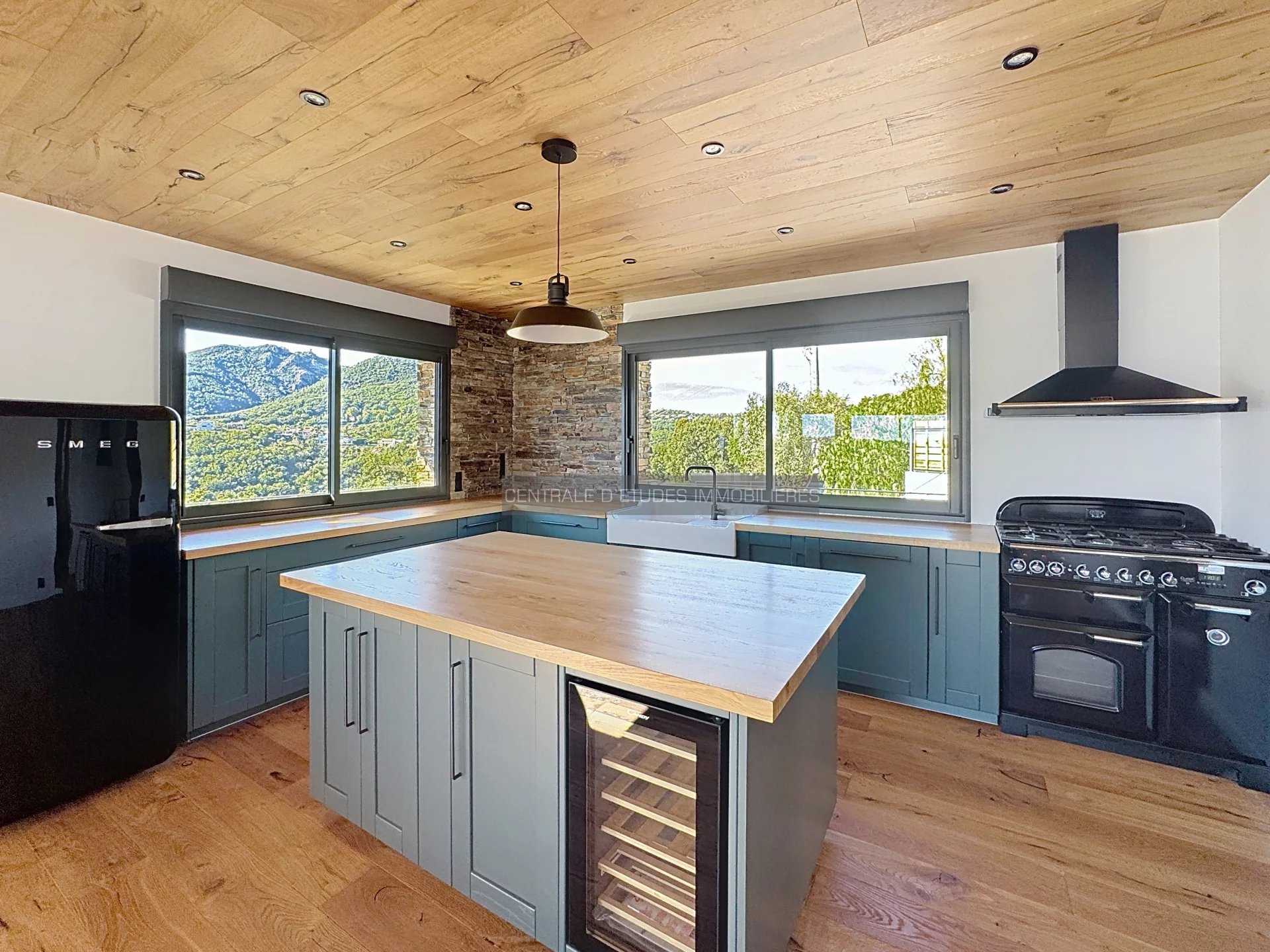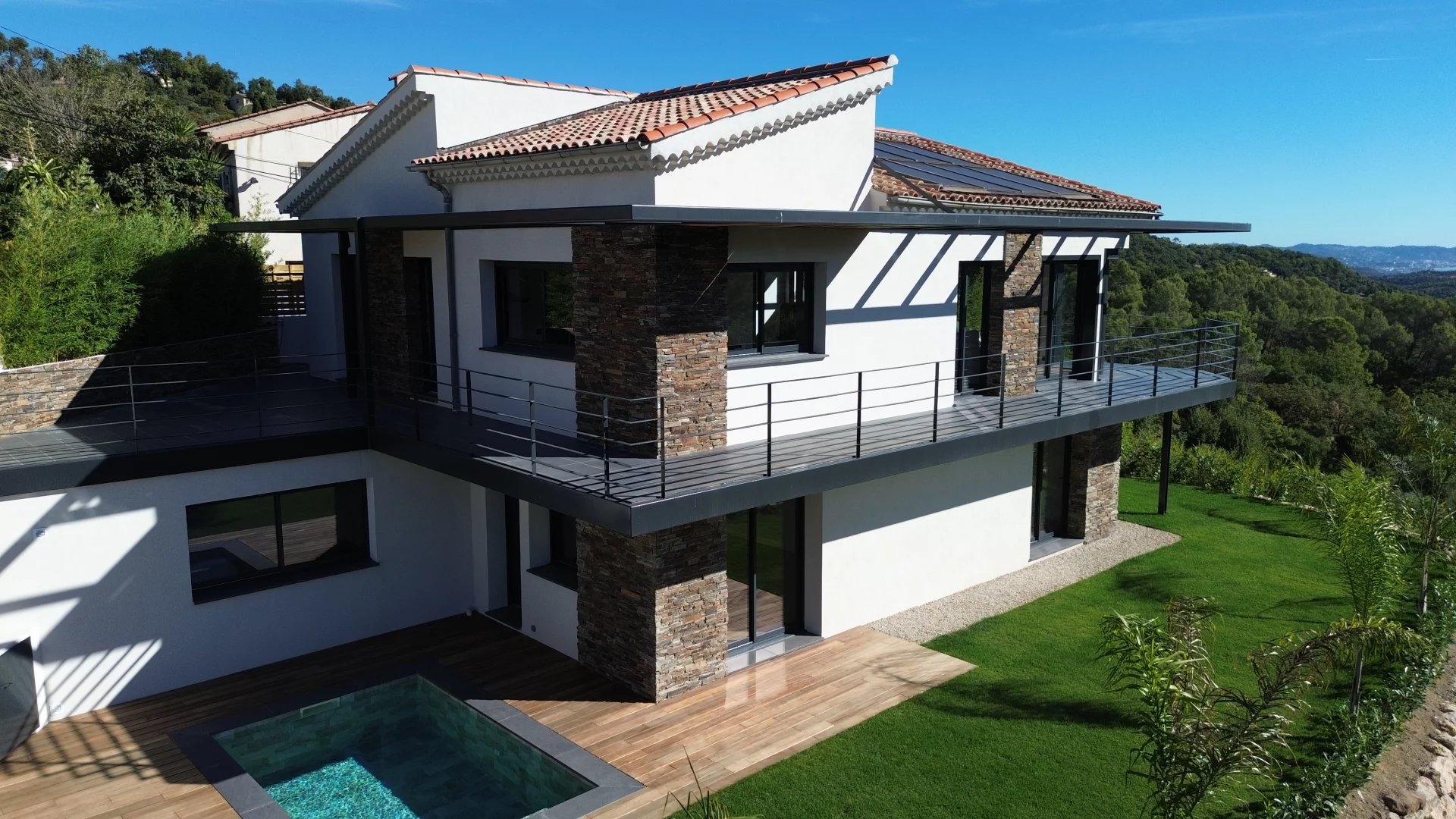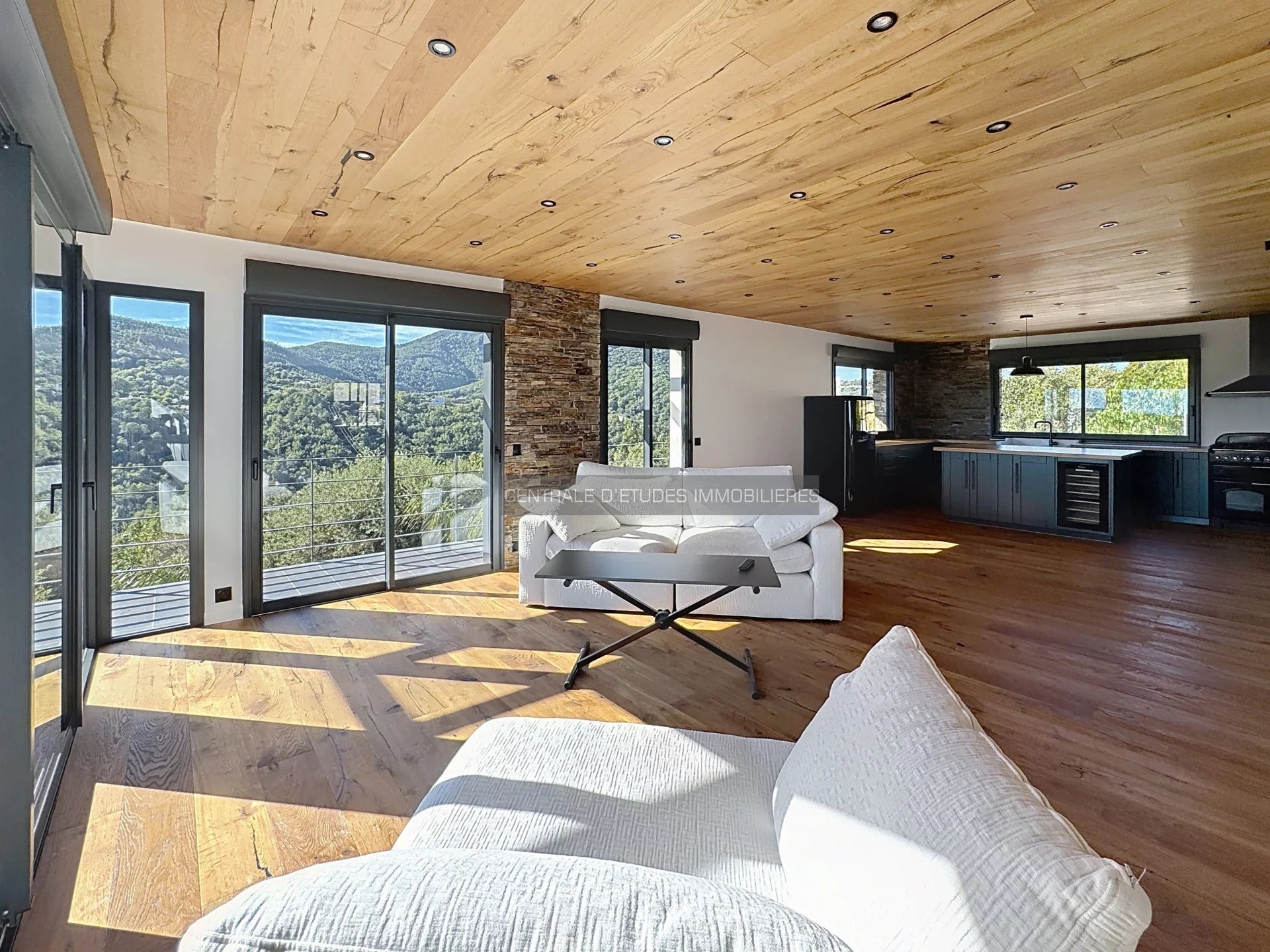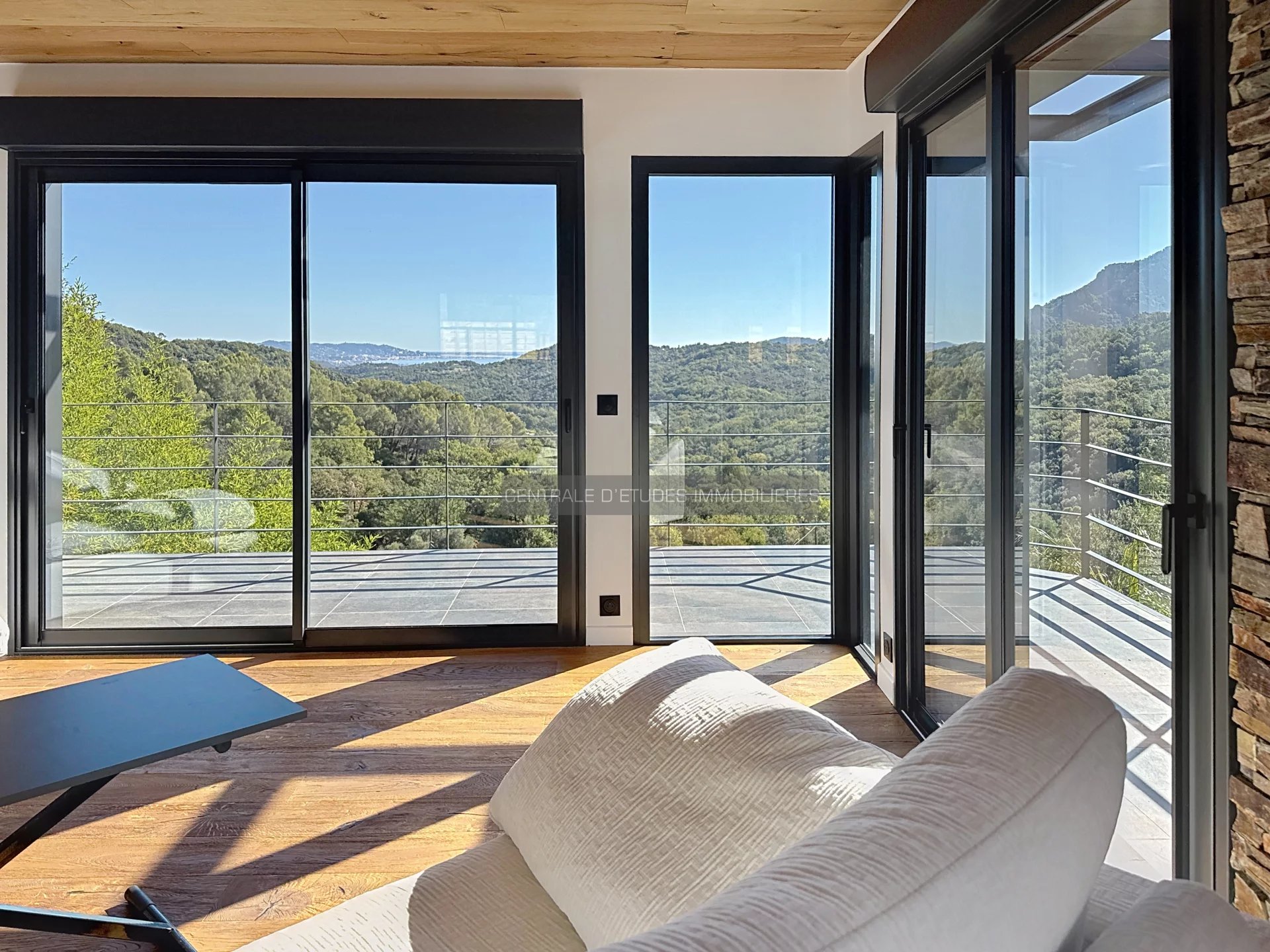 Située dans un environnement verdoyant et paisible, cette villa entièrement rénovée dans un style contemporain séduit par sa luminosité exceptionnelle et sa vue dégagée jusqu’à la mer.